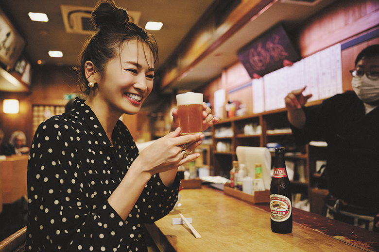 「旅をするのも大好きで、街歩きもすごく好き。だから酒場まで歩くのはマイルールかもしれません。酒場がある街の雰囲気を歩いて感じているとすっと自然にのれんをくぐれるような気がしています。そしてどの酒場に行く時もおじゃまします、という気持ちを忘れずに。あとは店主の方と無理のない範囲でお話をして歴史やこだわりを聞いたりするのも勉強になります。あと一番大切なのは、酔っ払い過ぎないこと!ダラダラ飲まずに楽しく品良く。これをモットーにしています」