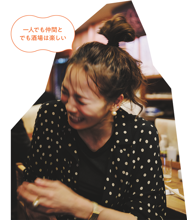 「父はよく飲みに出かける人で、いつも楽しそうにしていた記憶がありました。『酒場にはたくさんの出会いがあって、年齢や職業が違っても友達ができるんだよ。康子、これは人生の財産だよ』って言っていて。私もそんな財産が欲しいと幼心に憧れを抱いていました。あとはボトルキープをしてみたい! そんな思いをずっと持っていまして、20歳になり満を持して酒場デビュー。憧れの聖域に通うようになるのですが、父の言っていた通り!酒場での時間って一期一会。その時、そのタイミングで飲むお酒、いただくつまみ、居合わせる人、ふたつと同じことがなく、刹那的なところが人間味を感じられてたまらなく好きなんです」