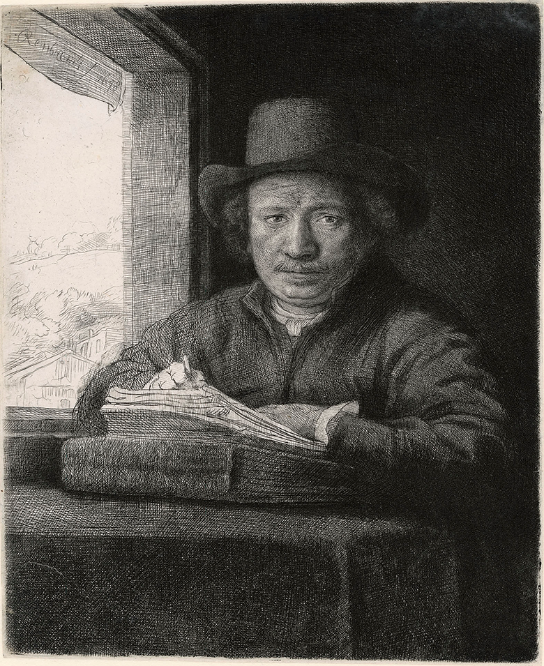 • レンブラント・ハルメンスゾーン・ファン・レイン 《窓辺でエッチングを制作する自画像》