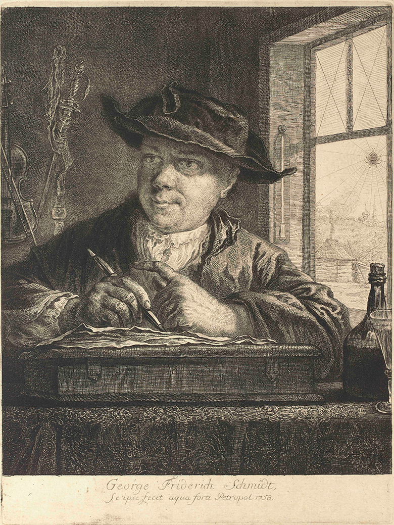 • ゲオルク・フリードリヒ・シュミット《窓辺で素描する自画像》