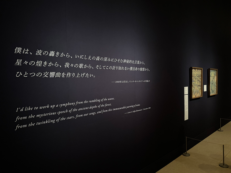 チュルリョーニスが絵画制作に取り組んだ期間は約6年間と、けっして長くありませんが、今日その評価を確固たるものにしているのは、ソナタ形式の絵画連作などに見られる音楽様式の導入です。同時代の画家たちとは異なり、作曲家ならではの独特なアプローチで絵画と音楽の融合を試みました。本展会場では彼の音楽も流し、優れた作曲家でもあった画家の繊細な感性を眼と耳で体感することができます。