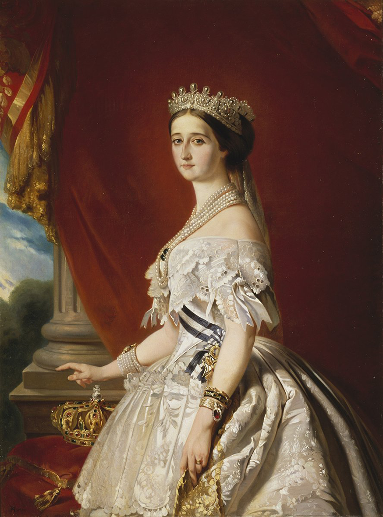 自らも王妃と同じく宝石を愛し、スカートの後ろ側を膨らませるクリノリン・スタイルを流行らせた、ファッションリーダーと呼べる存在でした。