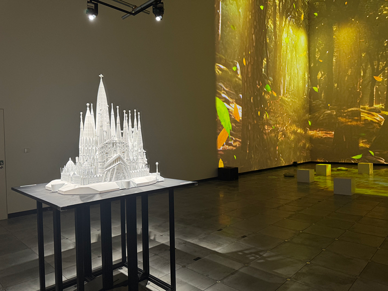 静かに時を遡り、ガウディという人間の原点へと導かれる序章。未完の聖堂を遺して逝った建築家の軌跡をたどりながら、自然と信仰、そして美の本質を探る旅が始まる。映像と空間が重なり、来場者は“死から過去へ”と時間を反転させる体験の中で、ガウディの精神へと歩みを進める。