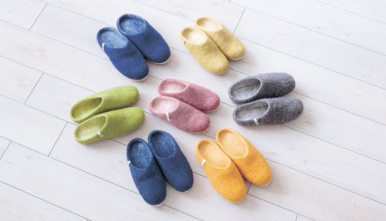 egosは2009年からフェアトレード認証を受け、生産国ネパールの健全な雇用の創出に貢献しています。天然ウールとやさしい染料で手作りされ、1人が1日に作れるのはわずか2足。履くほどに足になじむ、あなただけの特別なスリッパになります。Mサイズ(約22~24cm目安・色は選べません)をプレゼント。オンラインストアではMとLの2サイズをご用意しています(9350円/税込み)。