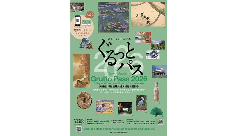 東京を中心に107の美術館・博物館などの入場券や割引券がセットされた「東京・ミュージアム ぐるっとパス2026」(QRコード/2500円/税込み)はスマートフォンやパソコンなどで「ぐるっとパス2026」購入サイトから購入できます。加盟する美術館・博物館・動物園・水族園・植物園・庭園の窓口のほか、東京観光情報センター(都庁第一庁舎1階)などで「ぐるっとパスカード」(QRコード付きカード)が買えます。コンビニエンスストアでも引換券が購入できます。
