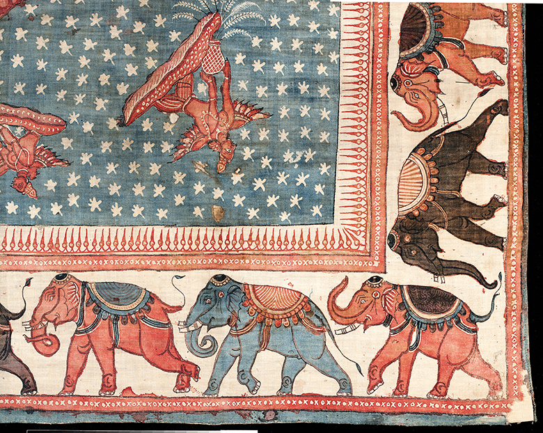画像右)《白地蓮華象文様天蓋布》(部分)18世紀 Karun Thakar Collection, London. Photo by Desmond Brambley
