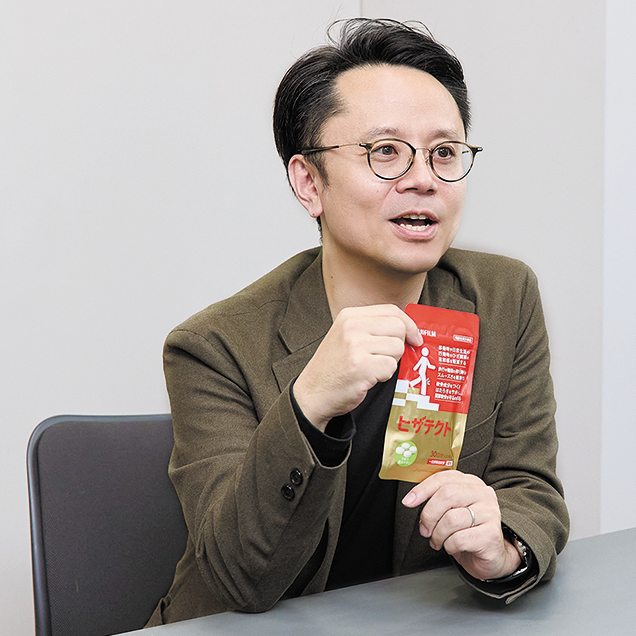 〈薗村〉『ヒザテクト』はヒト試験によって機能性表示が確認されたサプリメントです。なので安全性についてはご理解いただきやすいのですが、どう働くのかという仕組みの部分を伝えるのには、かなり苦慮しました。いかに分かりやすく、納得感をお客様に持っていただけるか。我々にとっては非常にやりがいのあるところですね。